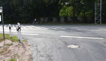 den gegenüber liegenden Radweg erreichen wollen, müssen sogar drei Fahrspuren auf der Landesstraße überqueren.