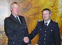 Dirk Heins (rechts) wurde zum Ersten Hauptfeuerwehrmann befördert
