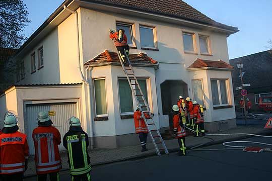 Das Gebäude war stark verqualmt und konnte nur unter schwerem Atemschutz betreten werden. Als besondere Schwierigkeiten erwies sich, dass einige Türen verschlossen waren, und das Gebäude über viele Räume verfügte, sodass sich die Einsatzkräfte leicht verlaufen konnten. Trotzdem machten die Brandschützer die vermissten Menschen ausfindig und retteten sie mit zwei Steckleitern über einen Balkon sowie ein Fenster an der Vorderseite. Für die Brandbekämpfung von außen wurde eine Wasserversorgung vom nahegelegenen Mühlenteich eingerichtet. Im Inneren des Gebäudes kam die Wärmebildkamera der Samtgemeinde zum Einsatz, um nach versteckten Glutnestern zu suchen und diese abzulöschen. Nach einer Stunde waren die Vermissten gerettet, an das medizinische Personal übergeben und das Feuer unter Kontrolle. Postels bilanzierte: "Eine rundum gelungene Übung, die die Zusammenarbeit unter den Ortswehren gestärkt hat.“ Das Ärztehaus an der Mühlenstraße, das in den nächsten Wochen abgerissen wird, erwies sich dabei als ideales Übungsobjekt.