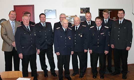 Ebenso einmütig erfolgte die Bestätigung der weiteren Funktionsträger: Kassenwart Uwe Wilkens, Schriftwart Dieter Jungemann, Funkwart Alfred Holst, Gerätewart Michael Bösch und Atemschutzbeauftragter Holger Cöllen, Sicherheitsbeauftragter Derk Heins wurden wiedergewählt. In seinem Bericht ging der Ortsbrandmeister auf die vier Einsätze des vergangenen Jahres ein und zeigte sich dabei enttäuscht, dass von der Bundeswehr, die Waldbrände bei Übungen verursacht hätten, keine Rückmeldung gekommen sei. Samtgemeindebürgermeister Stefan Tiemann versicherte, dass er sich der Sache annehmen wolle. Erfreut zeigte sich Cöllen, dass die Wehr, der 46 Mitglieder angehören, bereits kurz vor Weihnachten zwei neue digitale Meldeempfänger erhalten hat. Weitere Berichte trugen Sicherheitsbeauftragter Derk Heins, Gemeindebrandmeister Torben Henning und Kreisbrandmeister Jürgen Lemmermann vor. Torben Homm und Robert Kaiser wurden zu Oberfeuerwehrmännern befördert, Heiko Wollenberg wurde zum Hauptfeuerwehrmann ernannt. Anschließend nahm der Kreisbrandmeister Ehrungen vor: Für 60-jährige Mitgliedschaft in der Feuerwehr erhielten Johann Schlesselmann und Wilhelm Vieths die Ehrennadel des Landesfeuerwehrverbandes und Michael Bösch sowie Dieter Jungemann wurden für ihre 25-jährige Mitgliedschaft ausgezeichnet. Außerdem gab der Ortsbrandmeister bekannt, dass im Rahmen der 750-Jahr-Feier des Ortes Freetz am 22. Juni ein Tag der offenen Tür bei der Feuerwehr stattfinden wird.